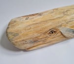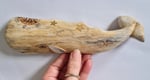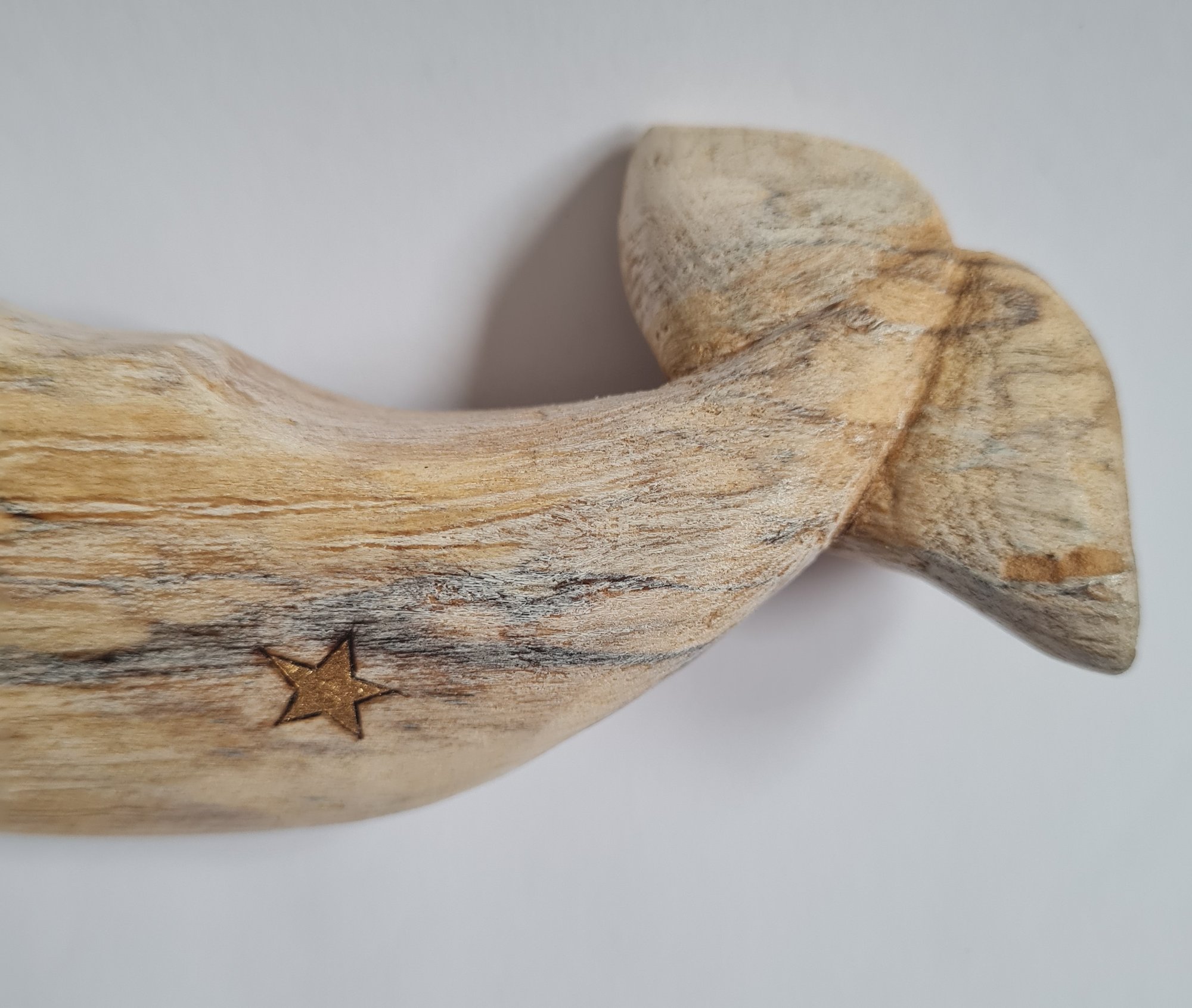 Every whale is unique and follows the shape and charater of the driftwood. Beryl has some beautiful colours/markings within the wood and a deep hole in thr back where I suspect a nail used to be but she swears it was a near miss with a harpoon. Her front face is curved but she is flat on the back and would look great against a vertical surface.