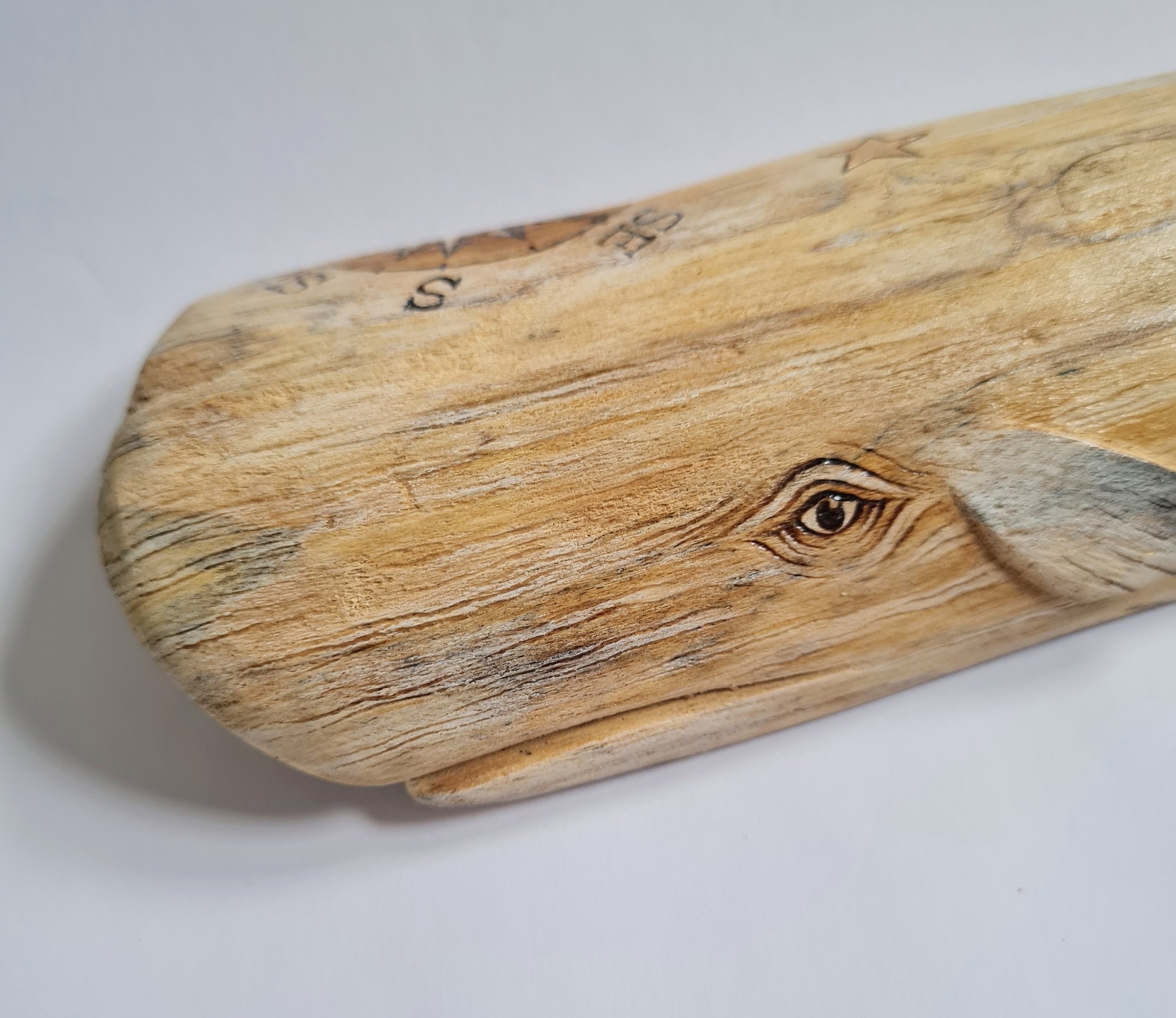 The driftwood is treated ready to work with and then gently whittled, burned and gilded into a one-of-a-kind pieces of art, ready to tell their tales from across the oceans.