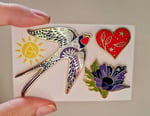 Swallow pin - measures approx 6 x 5cm across with double pins on the reverse for secure fastening.