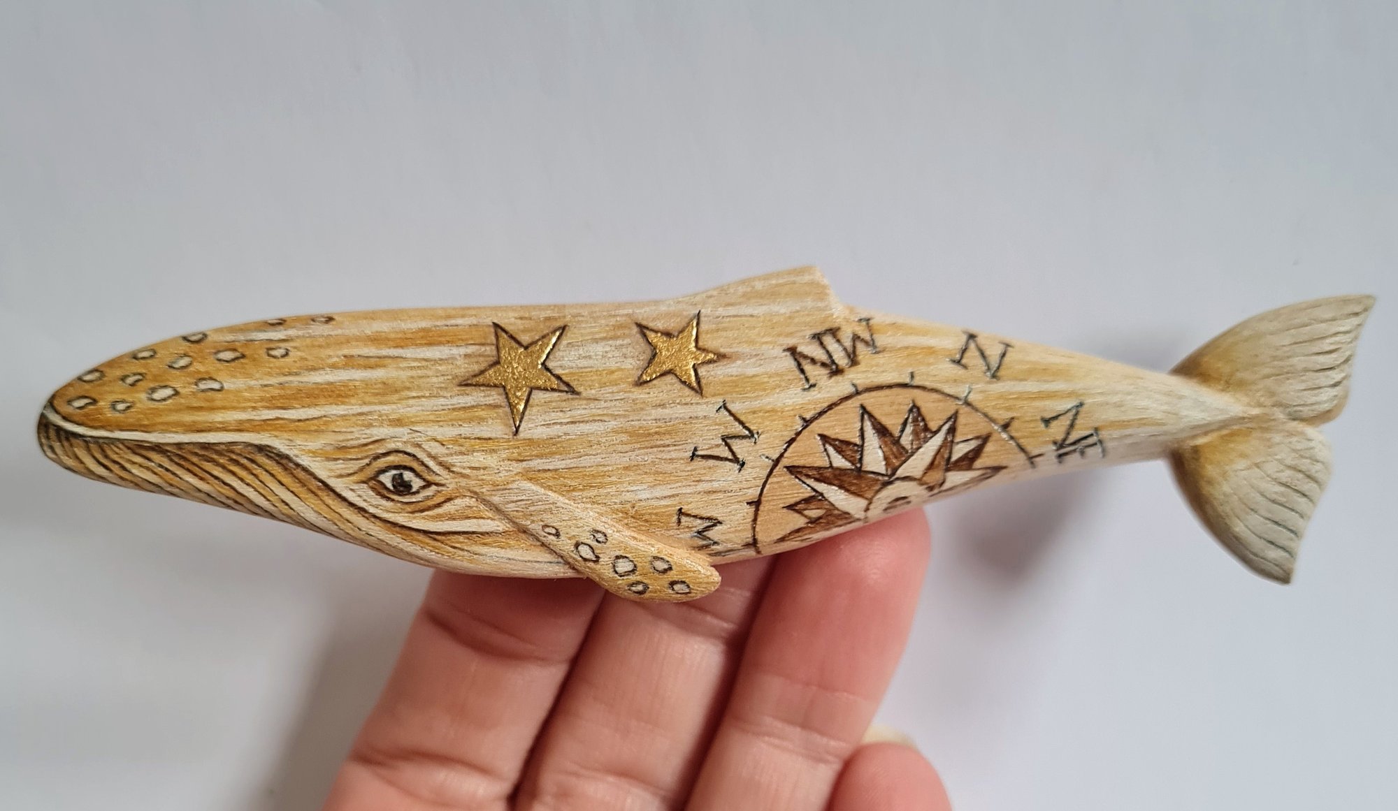 Small Humpback Whale with compass and gold.