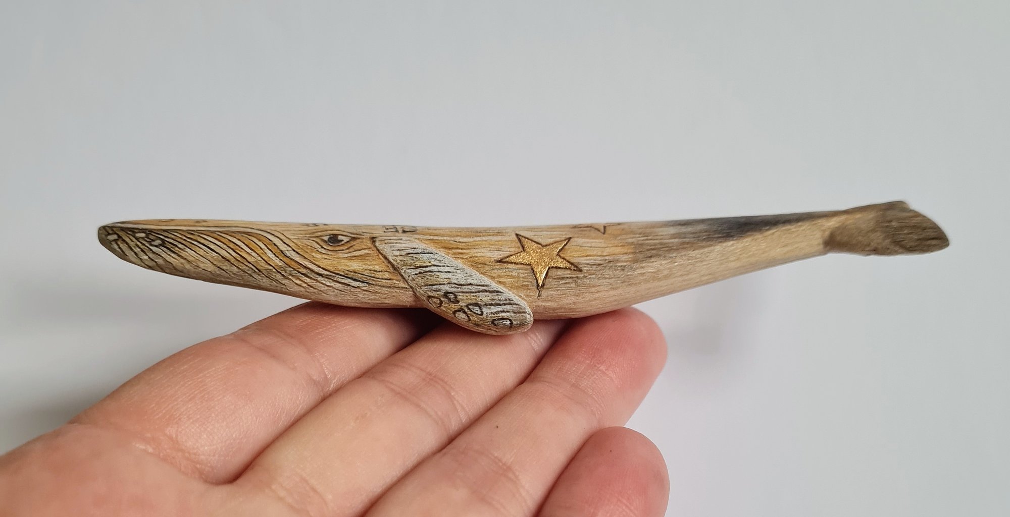 Small Humpback Whale with compass and gold.