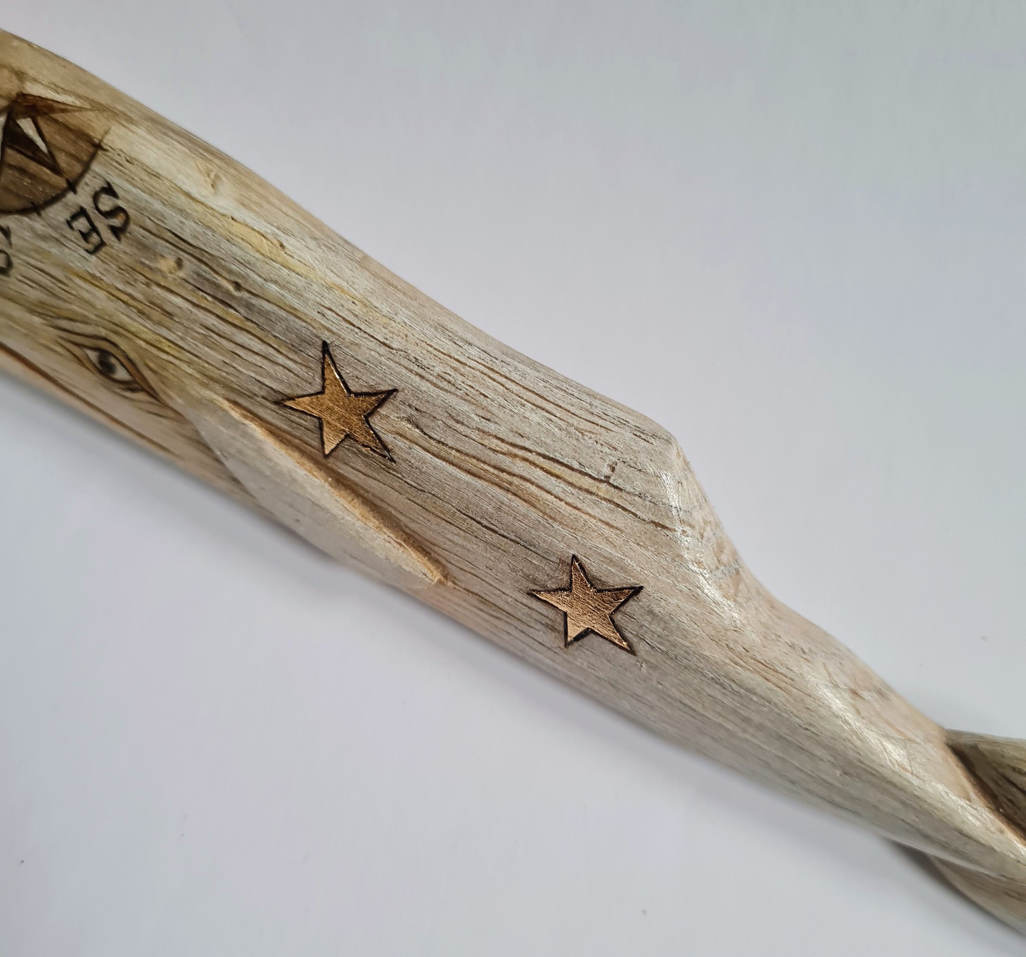 The driftwood is treated ready to work with and then gently whittled, burned and gilded into a one-of-a-kind pieces of art, ready to tell their tales from across the oceans.