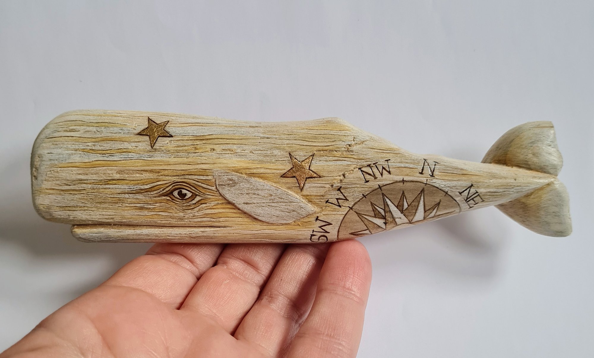 Small Sperm Whale with compass and gold.
