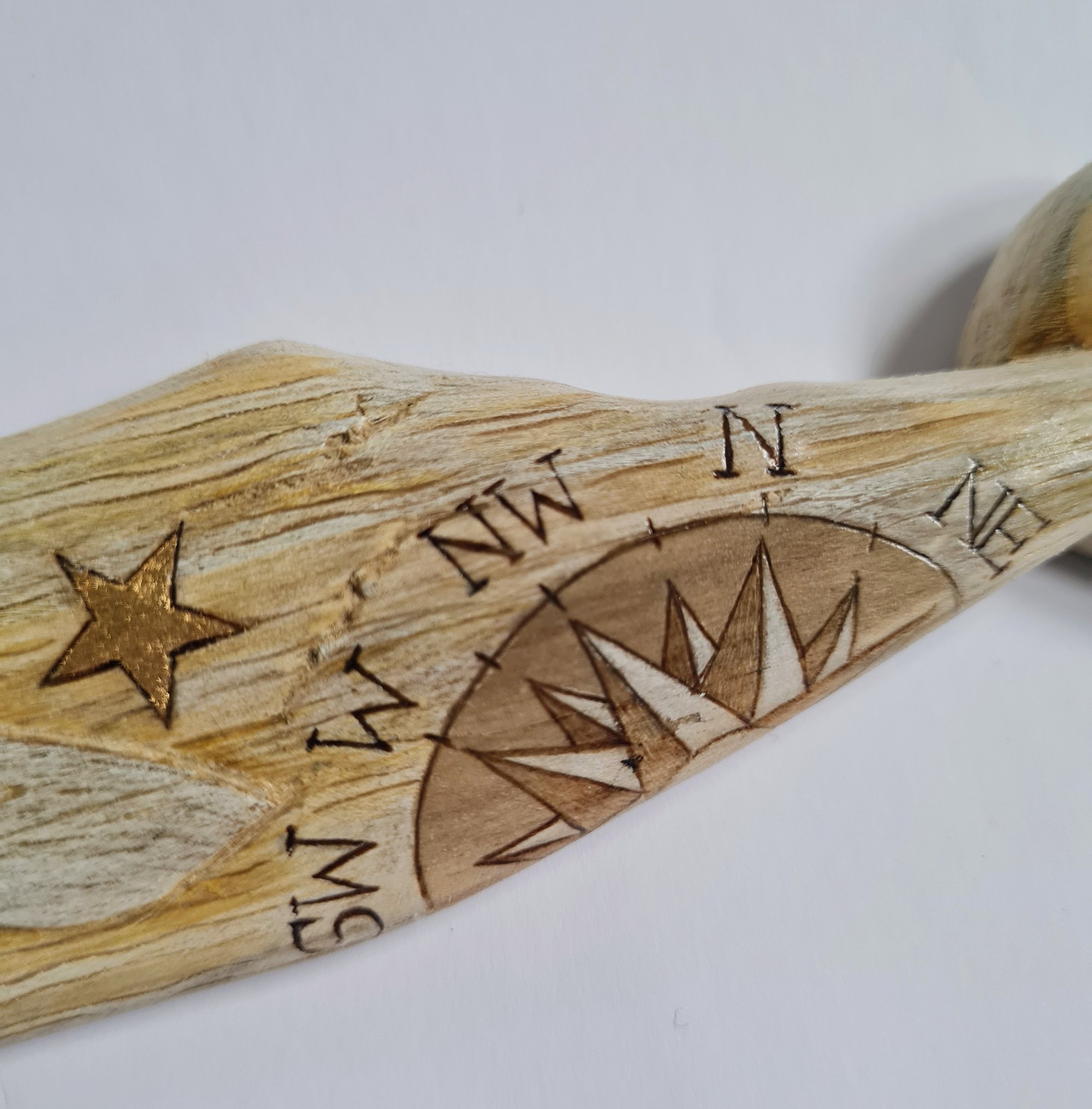 The driftwood is treated ready to work with and then gently whittled, burned and gilded into a one-of-a-kind pieces of art, ready to tell their tales from across the oceans.