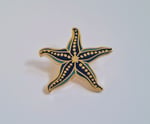 A brand new pin design in this series, fresh from the latest Treasure Box...highly polished gold effect metal with blue enamel in-fills in different shades featuring a magificent little seahorse.