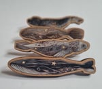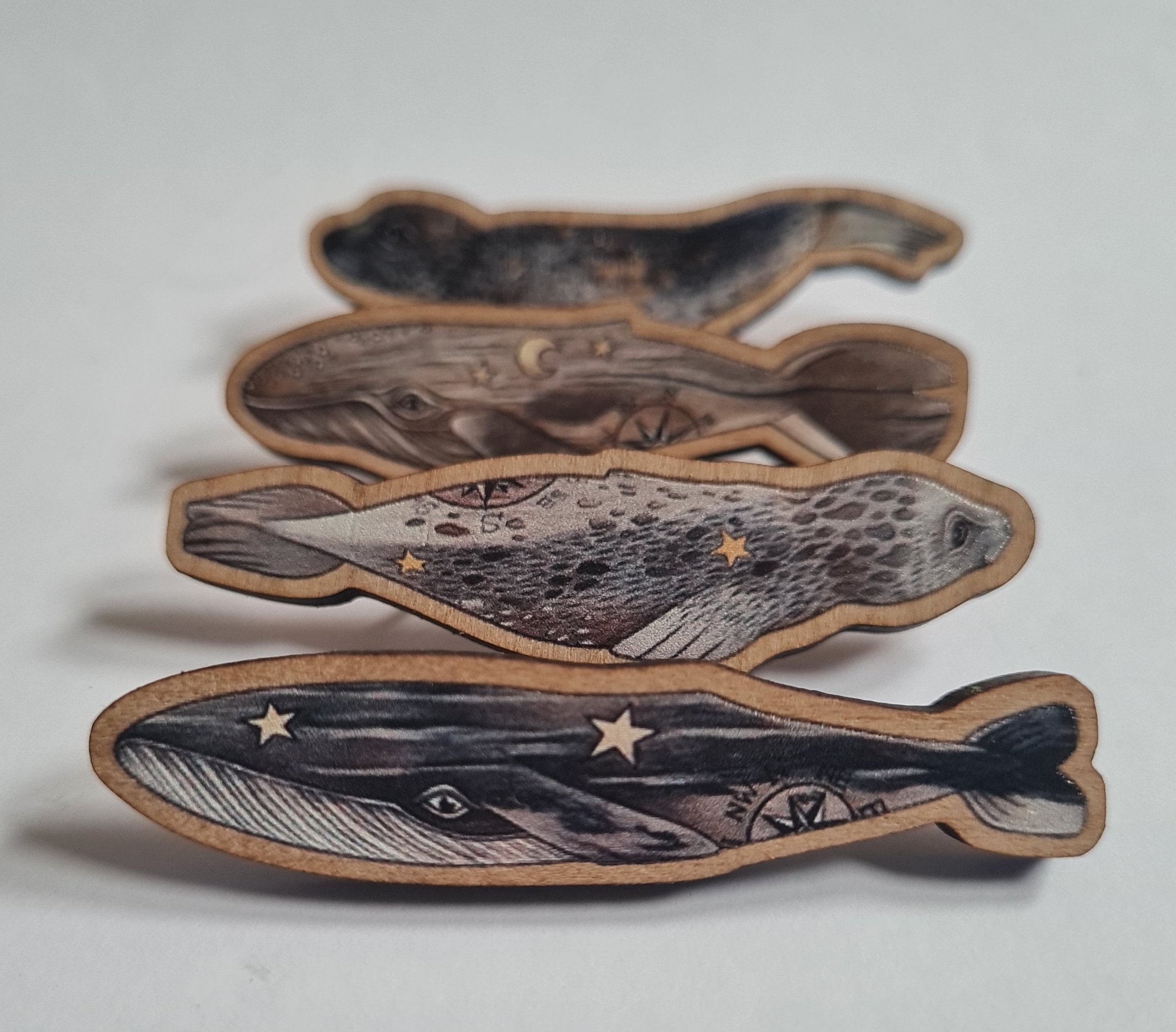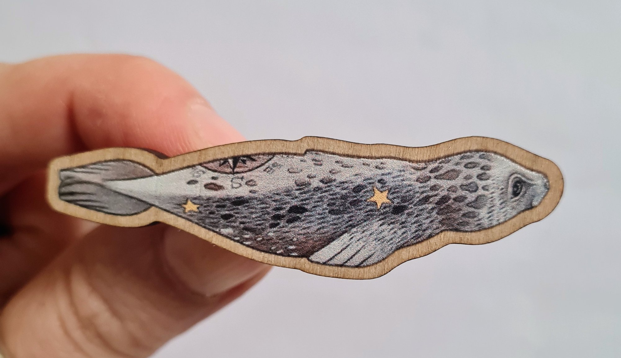 Measures 6 x 1 cm with double pins on the reverse for secure fastening and rubber fixings.